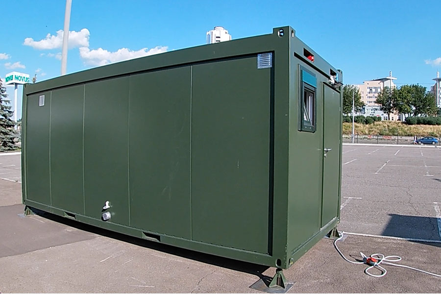 Сантехнічне устаткування, меблі, системами обігріву води, опалення та освітлення виготовлене з врахуванням всіх потреб Армії. Мобільні модулі виготовленні на виробництві, що сертифіковано згідно стандартів НАТО для військових цілей.