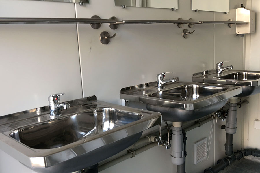 Комплексне забезпечення функціонування таборів Modular Systems має можливість забезпечити поставку гідрофорних контейнерів, які дозволяють, завдяки зовнішнім водопровідним підключенням модулів, легко постачати воду у модульні системи. Система швидкого підключення надає можливість налаштовувати водопровідну мережу за бажанням.